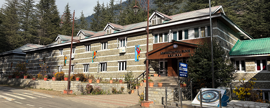 The Headquarter of Institute is located near Manali Town, in the left bank of Beas river. Its campus is surrounded by lofty and handsome cedar trees. All the buildings have been constructed keeping in view the local architecture and in conformity with the nature.